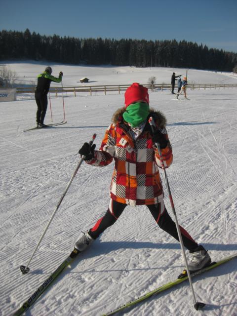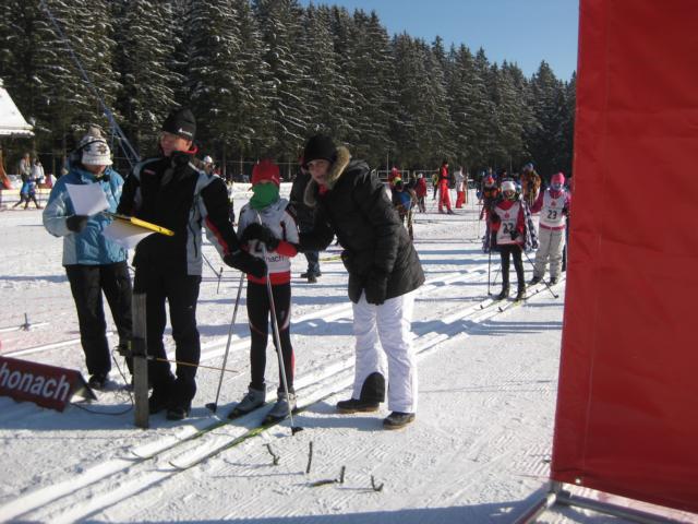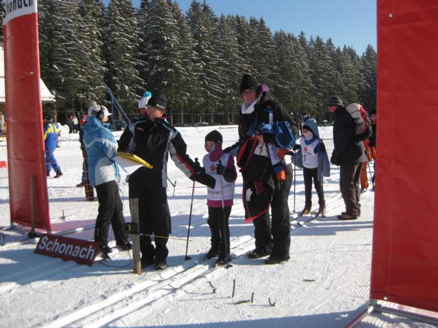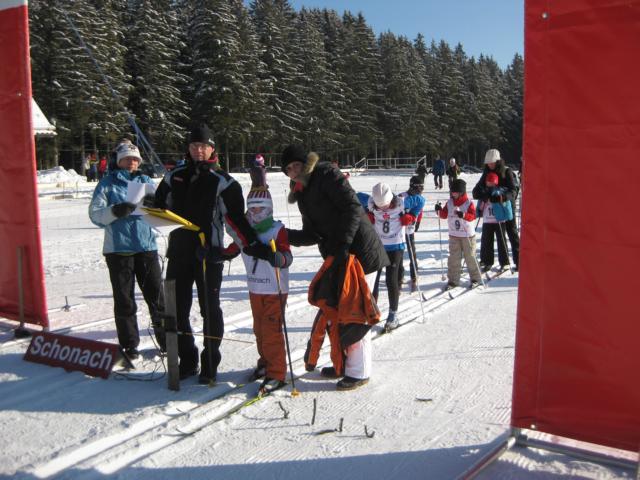 Bei fast minus 20°C mussten die Langläufer auf die Strecke, was gerade für die kleinsten Teilnehmer schon eine grenzwertige Aufgabe war. Netterweise haben uns die Schonacher die Umkleide-Container des Weltcups geöffnet und auch noch beheizt, so dass die Läufer sich aufwärmen konnten und die Wachser es auch einfacher hatten.