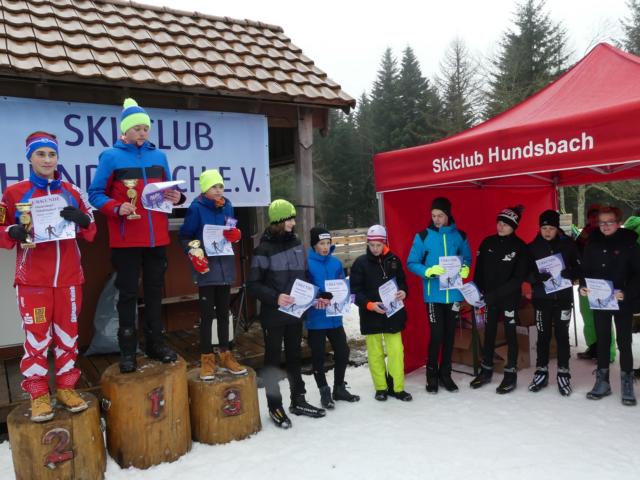 Mit den Ergebnissen unserer Sportler dürfen wir heute, mit 3 Siegern, sehr zufrieden sein. Alle Teilnehmer waren hochmotiviert und holten das Beste aus sich heraus. Lena Faller, Patrick Zähringer und Timo Heizmann freuten sich, dass sie je einen schönen Siegerpokal des SC Hundsbach in Empfang nehmen durften. Leider knapp am Siegerpodest vorbei geschrammt ist Simon Straub, der von seinem gestrigen Infekt noch etwas gezeichnet war. Robin schaffte es auf den sehr gute 6. Rang und unsere Boys der Klasse S12 machten mit den Plätzen 6 (Franz), 8 (Hannes), 9 (Elias) und 10 (Felix) auch einen tollen Wettkampf.