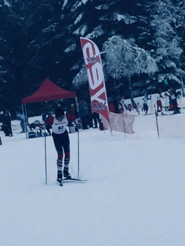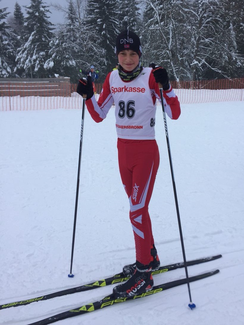 Leopold war mit seinem Rennen ganz zufrieden, aber beim Blick auf die Ergebnisliste doch etwas enttäuscht, als er sich auf dem 4. Platz wiederfand. Natürlich wussten wir, dass noch nichts verloren war, da ja erst im 6er-Finalheat entschieden wird, wer auf dem Treppchen steht. Nach einigen Versuchen Leopold´s Ettäuschung in positive Energie umzuwandeln ging er dann motiviert erneut an den Start. Leopold war nach dem Start auf Platz 3, als sich die 6 Läufer in den Wald verabschiedeten. Mama blieb angespannt, mit gedrückten Daumen im Start-Ziel Bereich zurück. Nun hieß es 2 bis 3 Minuten warten, bis der Erste der Truppe wieder im Zielbreich erschien. In der Hoffnung, dass Leopold den 3. Platz halten kann, bibberte ich an der Absperrung kurz vor dem Ziel. Als dann der große Lange mit dem weiß-blau-roten Anzug als erster am Waldrand erschien, konnte ich dann einen Freudenschrei doch nicht mehr zurückhalten. Natürlich waren alle 5 ihm dicht auf den Versen, dennoch konnte Leopold diese Führung bis ins Ziel retten und mit einem Freudenschrei und jubelnden Armen die Ziellinie überqueren. So toll wie es nun war, dass Leopold von Platz vier auf eins sprintete, so bitter war es leider natürlich auch für manch Langlaufkollege, der nach dem Prolog zurückgefallen war.