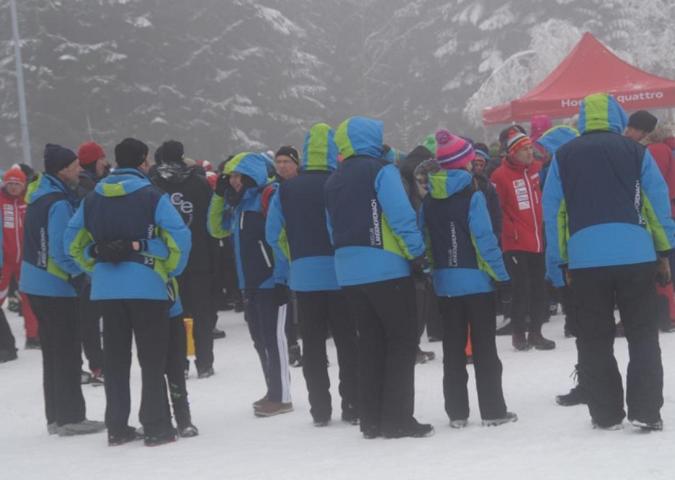 Aber zum Glück gab es ja dann am Sonntag wieder neues Spiel - neues Glück für ALLE. Es stand ein Einzelrennen in der freien Technik auf dem Programm. Ich freute mich sehr, als ich wieder die blaujackigen Ornemer im Kniebisstadion sehen konnte- hatte sich doch eine Gruppe mit 6 Sportlern und Eltern, Trainern und Betreuern schon ganz frühmorgens in Langenordnach auf den Weg in den Nordschwarzwald gemacht. Nun hieß es den "wahren Wintersportler" aus sich rauszuholen, denn heute war es noch kätlter und ein ungemütlicher Wind kam noch dazu mit immer wieder einsetzenden Schneefällen, aber wie gesagt, der wahre Wintersporlter fühlt sich bei solch einem Wetter doch erst richtig wohl. Deswegen waren wir auch nicht neidisch auf die Daheimgebliebenen, die in der warmen Stube saßen und Olympia am Fernseher schauten.;