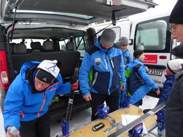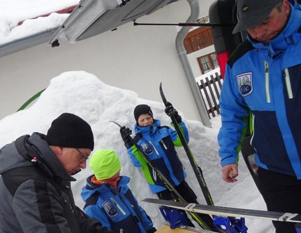 Unser bewährtes Wachsteam vom Kreisfinale auf dem Thurner, Hubert Rombach, Hermann Faller u Josef Heizmann sorgten bei unseren zwei Mannschaften der Grundschule Waldau-Langenordnach für einen super Ski.