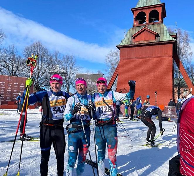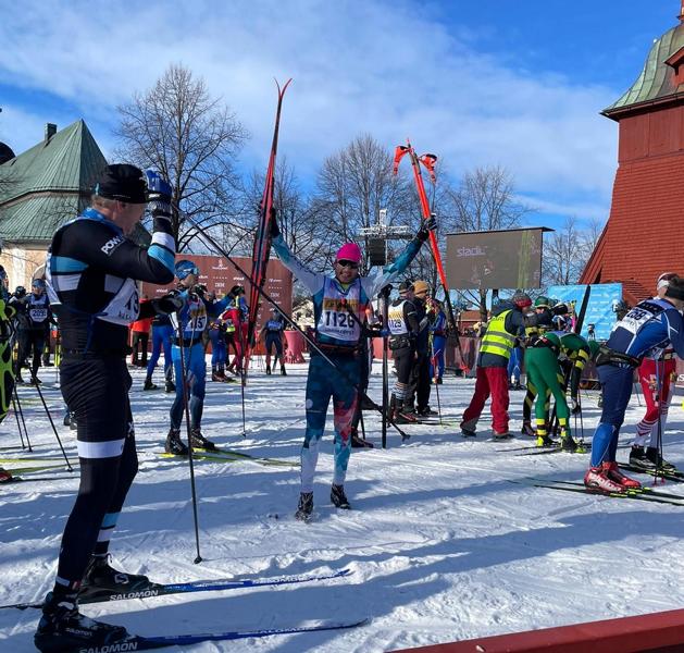 Ab Kilometer 60 ging es bei mir dann schwerer. Die Energie war weg. Der Auftrag an mich hieß also auf den Ski stehen bleiben und ins Ziel kommen. Das hat auch gut funktioniert und ich überquerte die Ziellinie in Mora nach 90 km mit einer Zeit von 4:58:29. Das bescherte mir mit dem 975. Platz (gesamt) einen Platz unter den besten 1.000 von 16.000 Startern. Peter ist mit seiner Zeit von 4:53:04 auf einem tollen 856. Platz (gesamt) gelandet. Peter und ich sind uns, trotz so vielen Leuten zweimal begegnet und konnten eine kleines Schwätzchen halten, wie es dem anderen denn so geht. Das hat sich vom ersten Mal nach sieben km bis km 60 etwas verändert.